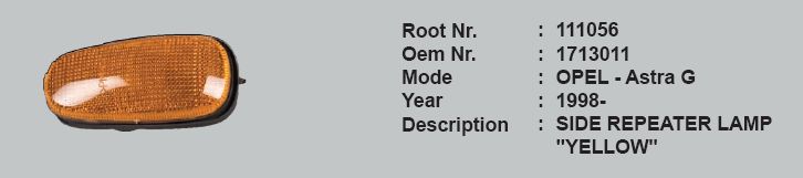 Ürün Adı: ÇAMURLUK SİNYALİ SAĞ SOL 1713011 111056 ASTRA-G (98-) SARI