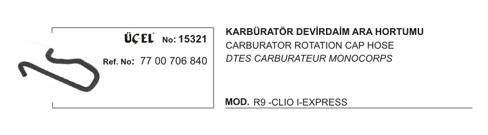 Ürün Adı: KARBÜRATÖR DEVİRDAİM ARA HORTUMU 15321 R9 CLIO-I EKSPRES 7700706840